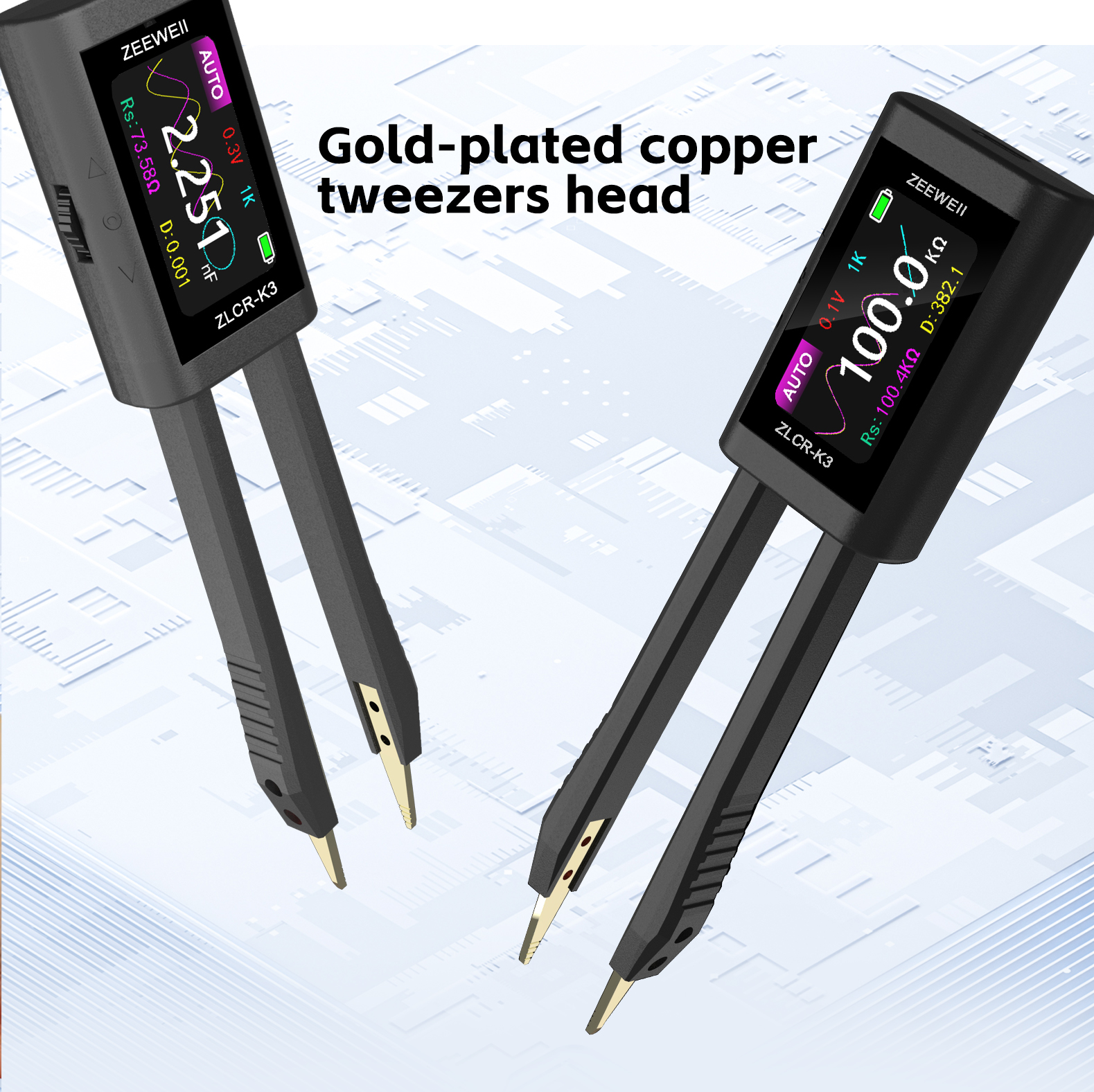 This ZLCR-K3 tweezer LCR meter has high measurement accuracy, can automatically identify the tested components, and supports 4 frequencies: 100 Hz, 1 kHz, 10 kHz, 100 kHz, and 3 voltages: 0.1V, 0.3V, 0.6V.